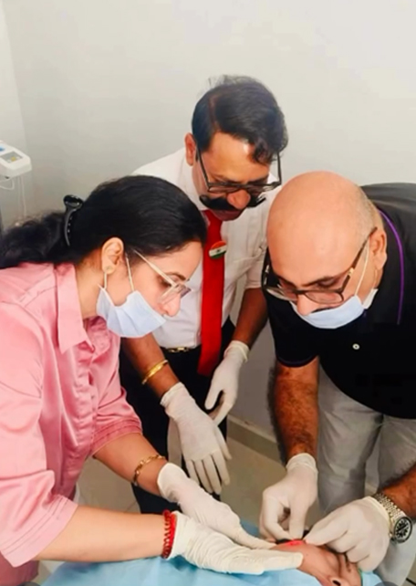 A focusedtraining workshop on facelift and double chin correction was conducted on 28 September 2025 in Chandigarh, bringing together young aesthetic surgeons keen to refine advanced facial rejuvenation skills. Dr. V. S. Rathore led the session, sharing his clinical expertise through direct mentoring and practical demonstrations.